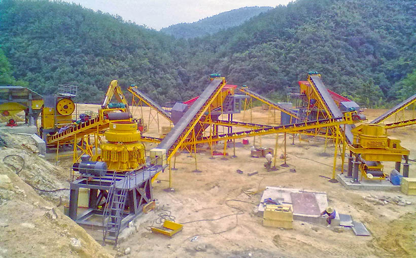 主要設備:顎破、液壓圓錐破、制砂機、振動篩、皮帶機等