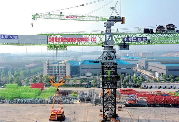 中交二航局常泰大橋項目R20000-720超大型上回轉(zhuǎn)移動平衡重智能塔機(馬弟/攝)